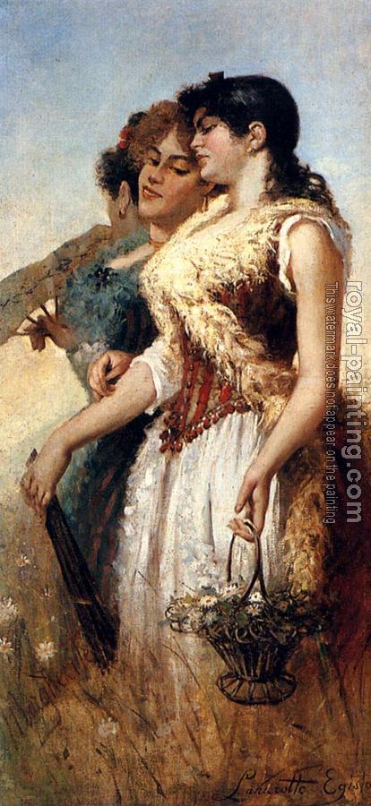 * Hand-painted Egisto Lancerotto Oil Painting Reproduction : Picking Daisies