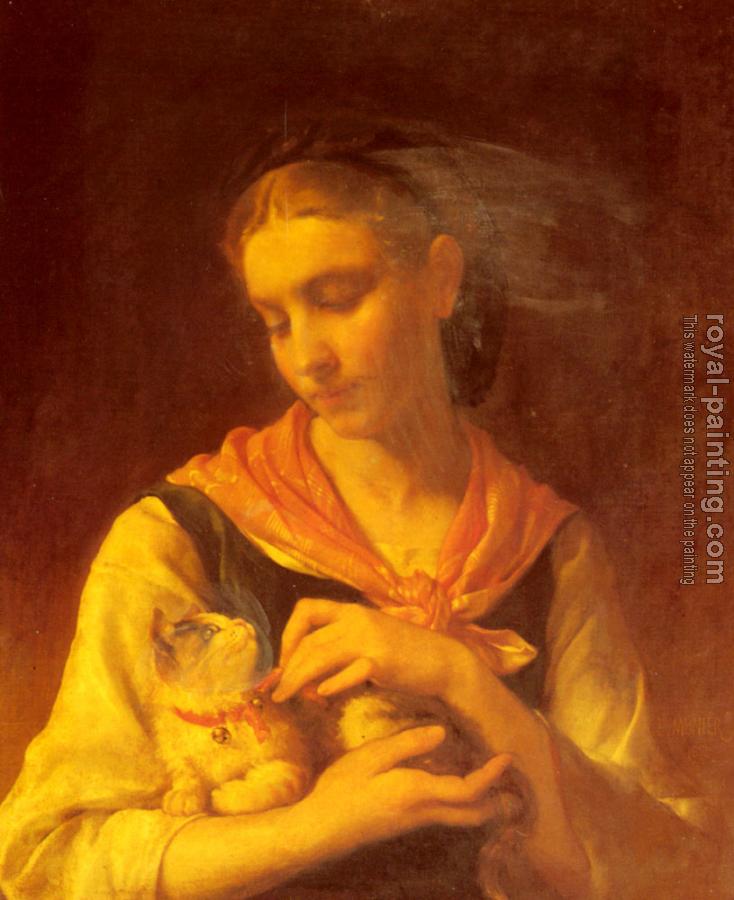* Hand-painted Emile Munier Oil Painting Reproduction : The Favorite Kitten