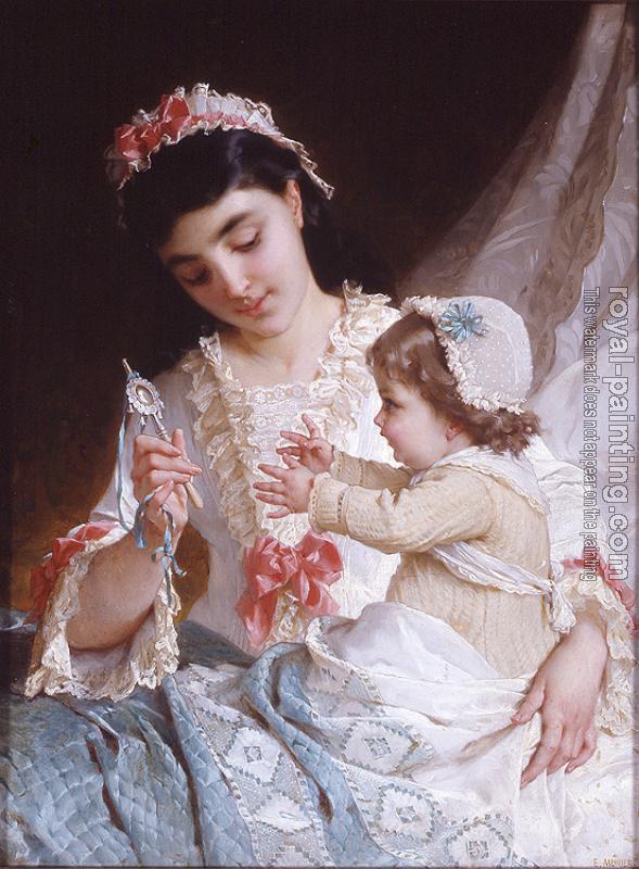 * Hand-painted Emile Munier Oil Painting Reproduction : distracting the baby