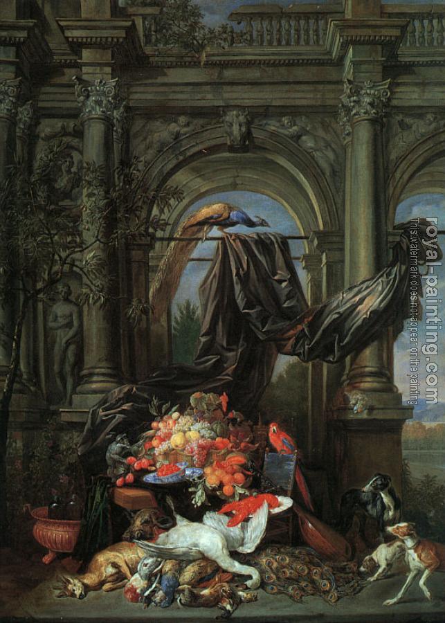 * Hand-painted Erasmus Quellin Oil Painting Reproduction : Still Life in an Architectural Setting
