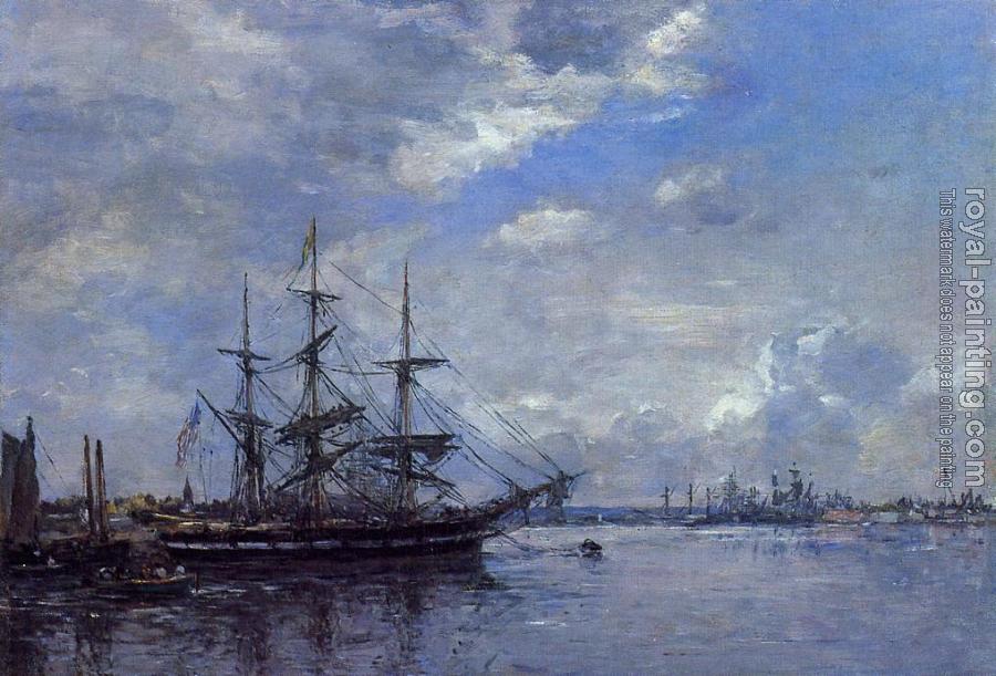 * Hand-painted Eugene Boudin Oil Painting Reproduction : Belgique, L'Escaut, Tournant