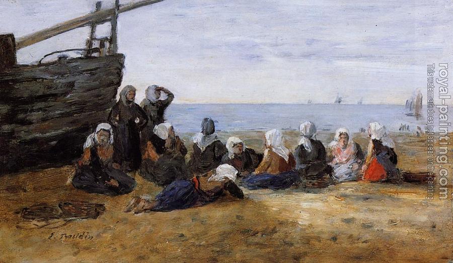 50696-Boudin, Eugene-Berck, Group of Fishwomen Seated on the Beach.jpg