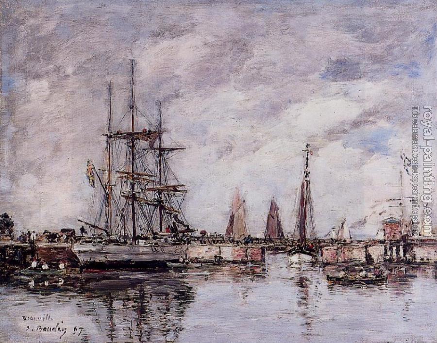 * Hand-painted Eugene Boudin Oil Painting Reproduction : Deauville, Norwegian Three-Master Leaving Port
