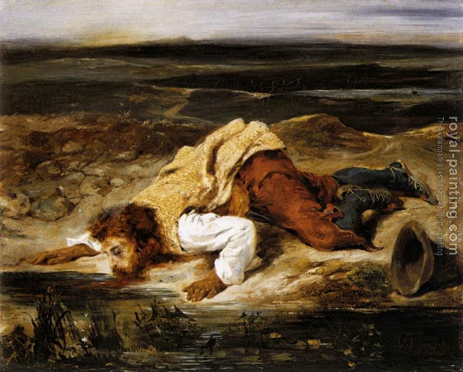 A Mortally Wounded Brigand Quenches his Thirst by Eugene Delacroix