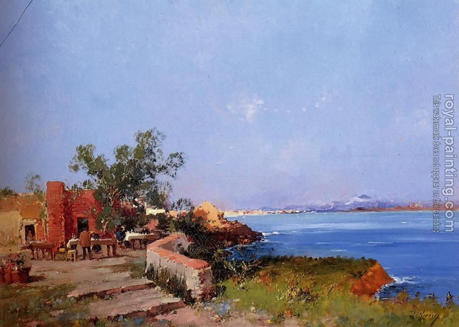 * Hand-painted Eugene Galien-Laloue Oil Painting Reproduction : Lunch On A Terrace With A View Of The Bay Of Naples