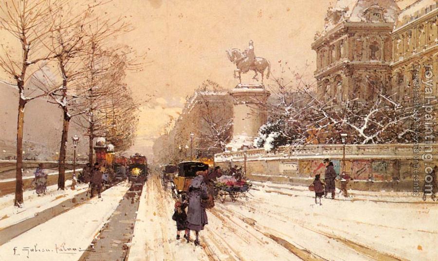 * Hand-painted Eugene Galien-Laloue Oil Painting Reproduction : Paris In Winter
