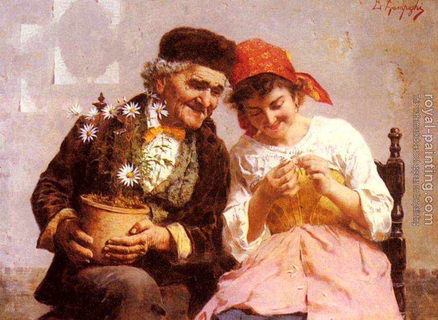 * Hand-painted Eugenio Zampighi Oil Painting Reproduction : He Loves Me, He Loves Me Not