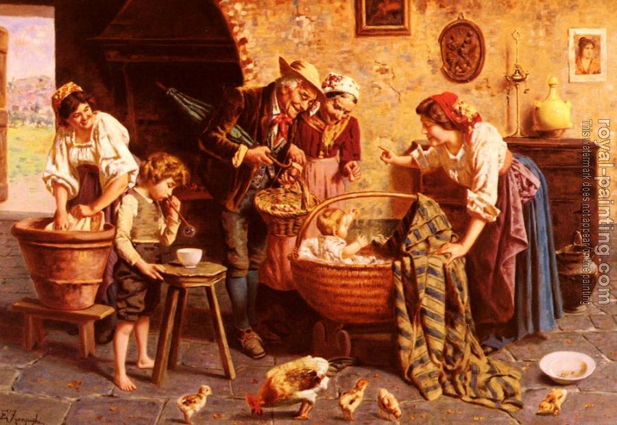 * Hand-painted Eugenio Zampighi Oil Painting Reproduction : The Family Gathering