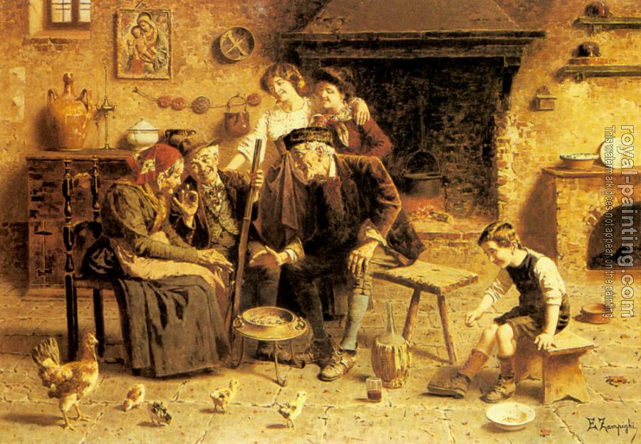 * Hand-painted Eugenio Zampighi Oil Painting Reproduction : The Hunter's Tale