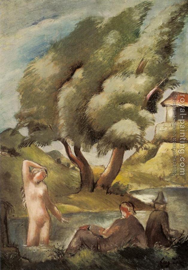 * Hand-painted Eugeniusz Zak Oil Painting Reproduction : Bathing (Pastoral)