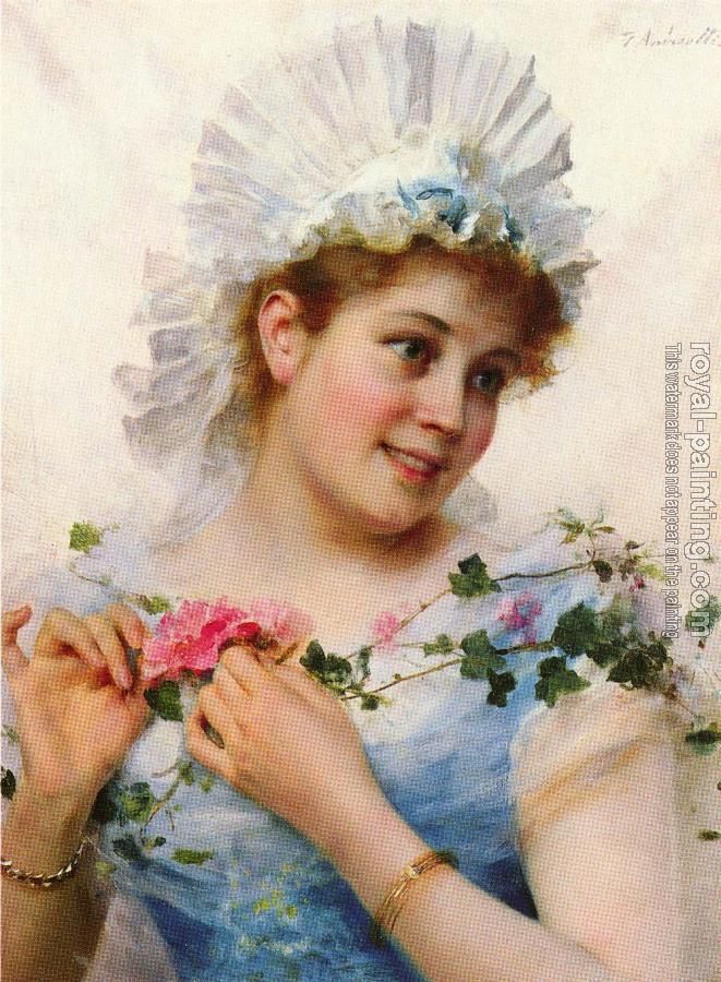 * Hand-painted Federico Andreotti Oil Painting Reproduction : A Young Girl With Roses