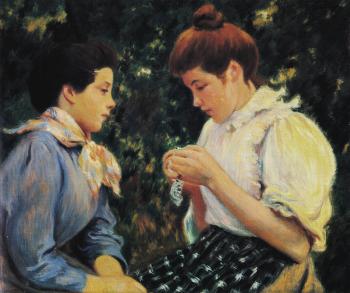 In 1874 Zandomeneghi went to Paris, where he was to spend the rest of his life. He quickly made the acquaintance of the Impressionists, who had just had their first group exhibition. Zandomeneghi, whose style of painting was similar to theirs, would participate in four of their later exhibitions, in 1879, 1880, 1881, and 1886. Like his close friend Edgar Degas he was primarily a figure painter, although Zandomeneghi's work was more sentimental in character than Degas'. He also admired the work of Mary Cassatt and Pierre-Auguste Renoir, and his many paintings of women in their domestic routines follow their example.[1] To supplement the meager returns from the sale of his paintings, Zandomeneghi found work drawing illustrations for fashion magazines.