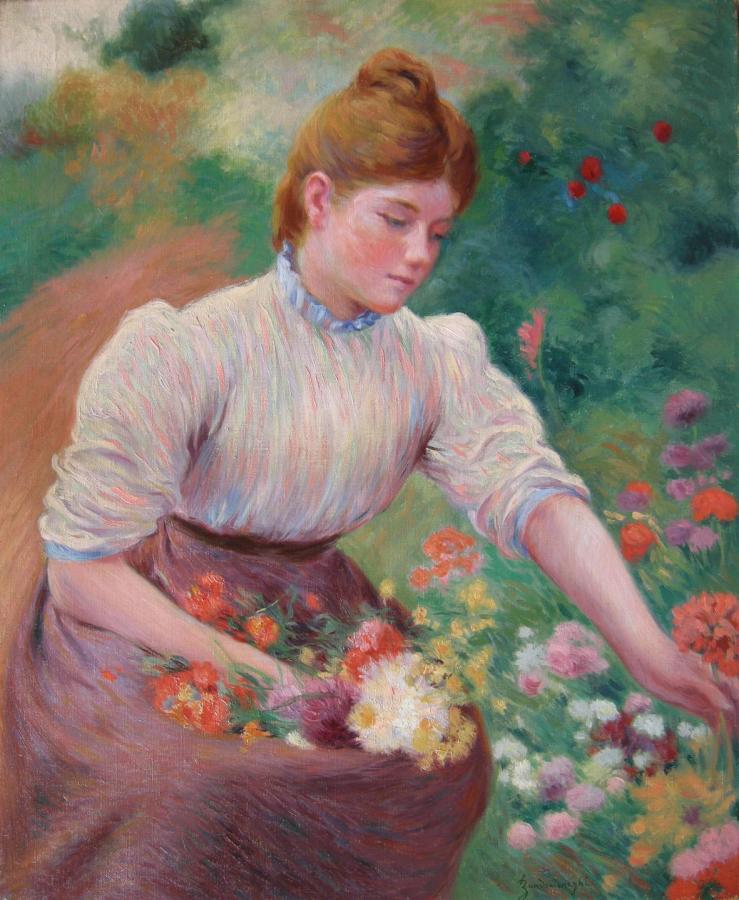 * Hand-painted Federico Zandomeneghi Oil Painting Reproduction : Girl picking flowers