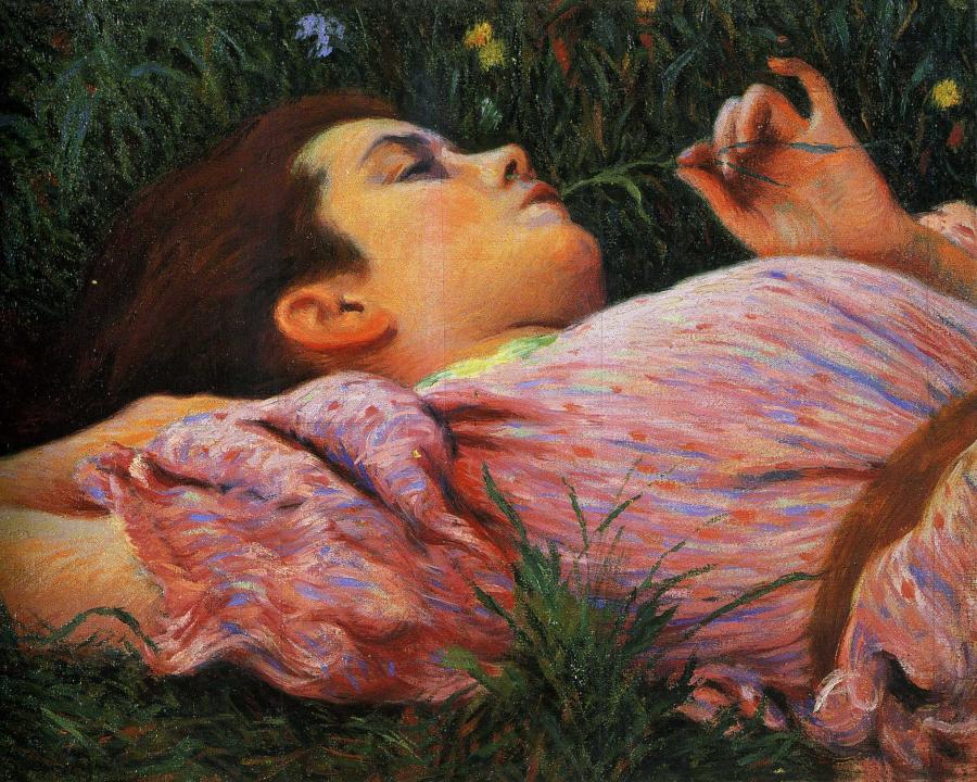 Federico Zandomeneghi oil painting : Girl with flowers