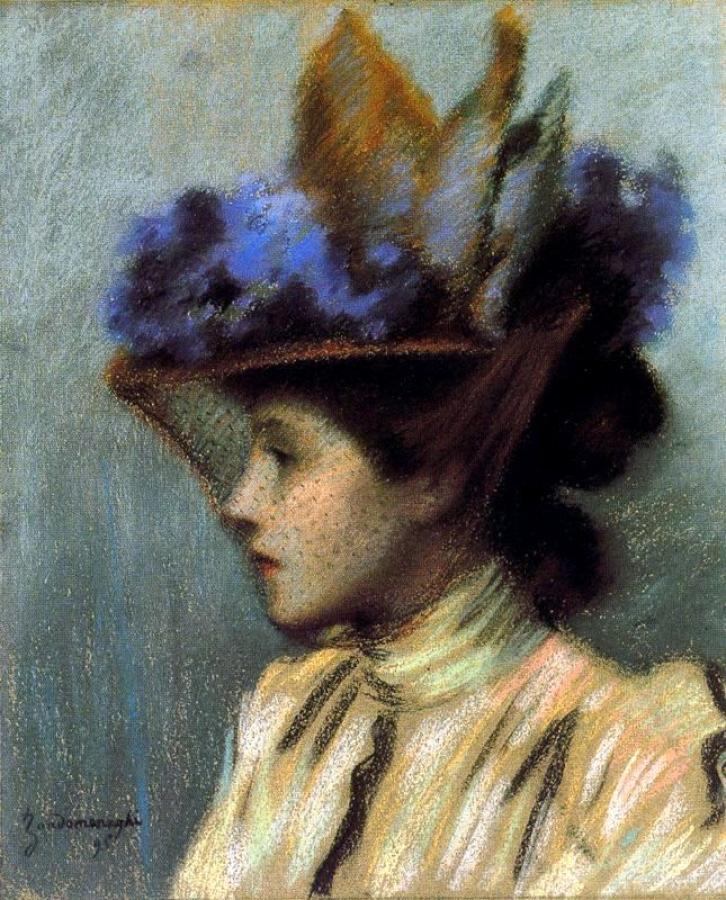 * Hand-painted Federico Zandomeneghi Oil Painting Reproduction : Lady with a hat