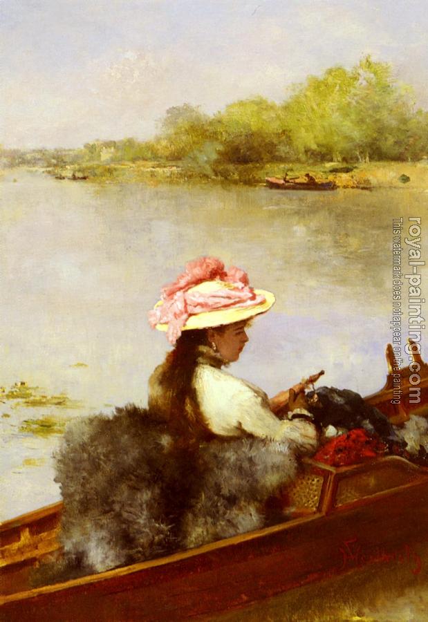 * Hand-painted Ferdinand Heilbuth Oil Painting Reproduction : La Promenade Sur Le Lac