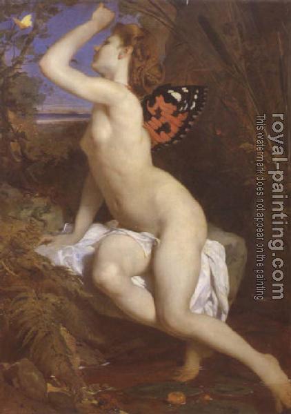 * Hand-painted Ferdinand Keller Oil Painting Reproduction : The beauty and butterfly