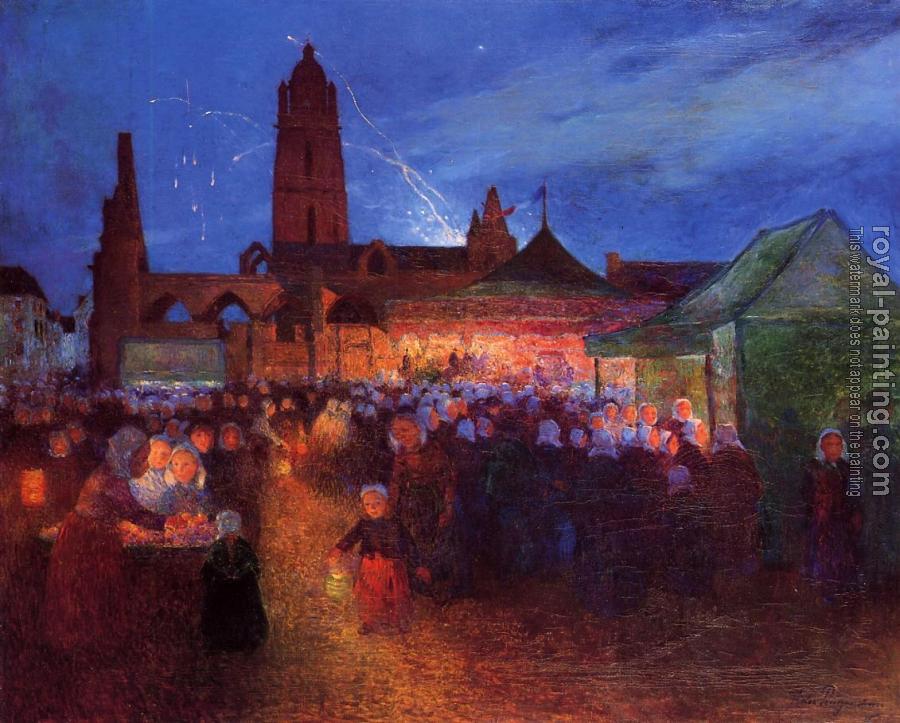 * Hand-painted Ferdinand Loyen Du Puigaudeau Oil Painting Reproduction : July 14th Fireworks at Bourg-de-Batz