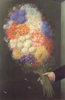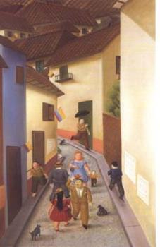 Fernando Botero was born the second of three children in Medellin, Colombia. His parents were David Botero and Flora Angulo. David Botero, a salesman who traveled by horseback, died when Fernando was four, and his mother worked as a seamstress. An uncle took a major role in his life. Although isolated from art as presented in museums and other cultural institutes, Botero was influenced by the Baroque style of the colonial churches and then the rich life of the city.