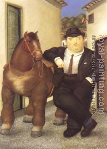 * Hand-painted Fernando Botero Oil Painting Reproduction : Horse and man
