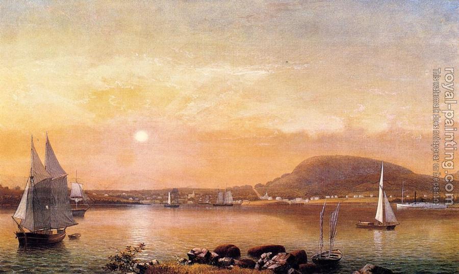 * Hand-painted Fitz Hugh Lane Oil Painting Reproduction : Camden Mountains and Harbor from the North Point of Negro Is