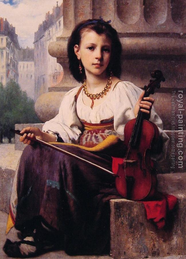 * Hand-painted Francois Alfred Delobbe Oil Painting Reproduction : The Young Musician