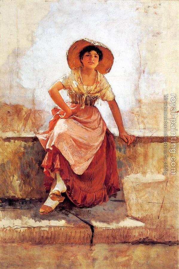 * Hand-painted Frank Duveneck Oil Painting Reproduction : Florentine Flower Girl II