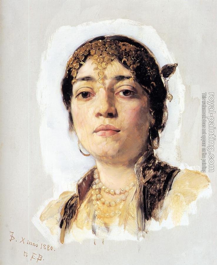 * Hand-painted Frank Duveneck Oil Painting Reproduction : Head of an Oriental Woman