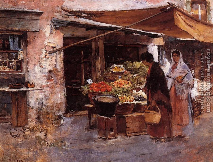 * Hand-painted Frank Duveneck Oil Painting Reproduction : Venetian Fruit Market