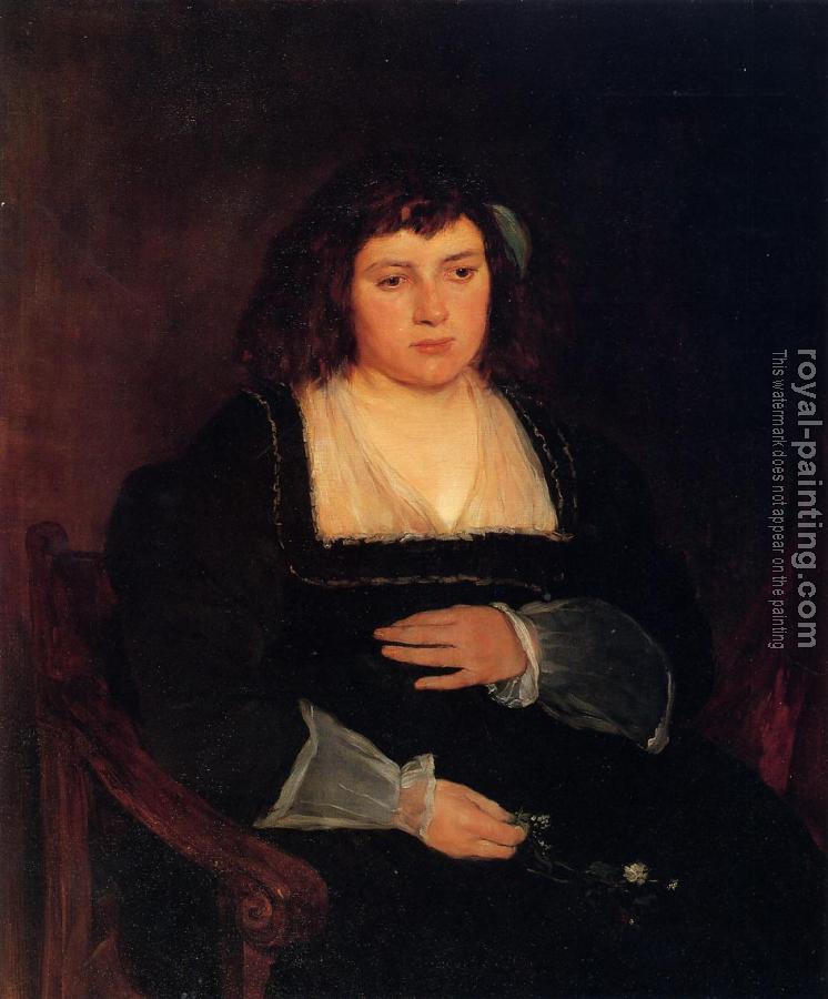 * Hand-painted Frank Duveneck Oil Painting Reproduction : Woman with Forget Me Nots