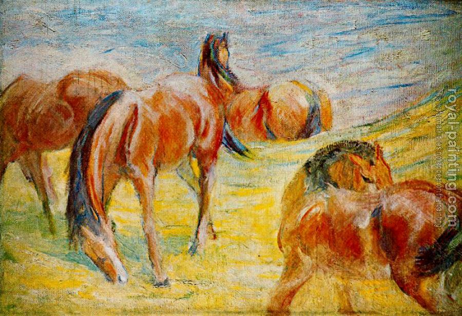* Hand-painted Franz Marc Oil Painting Reproduction : Grazing Horses