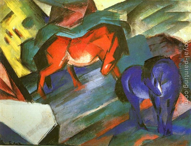 * Hand-painted Franz Marc Oil Painting Reproduction : Red and Blue Horse