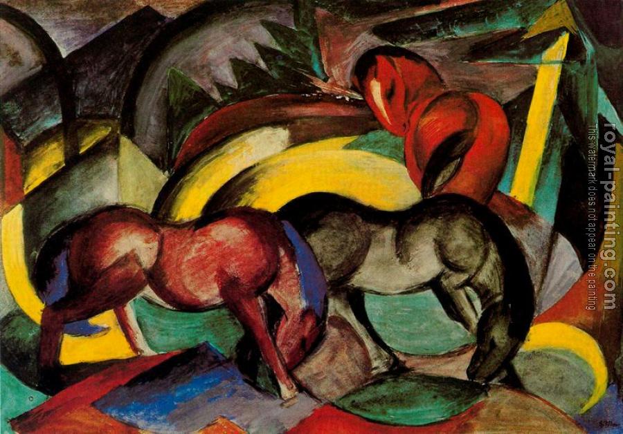 * Hand-painted Franz Marc Oil Painting Reproduction : Three Horses