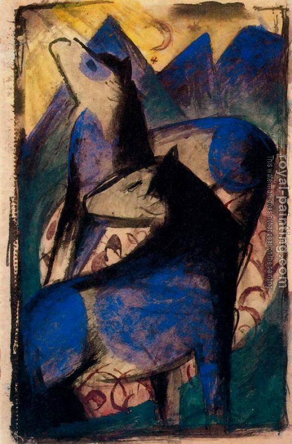 * Hand-painted Franz Marc Oil Painting Reproduction : Two Blue Horses