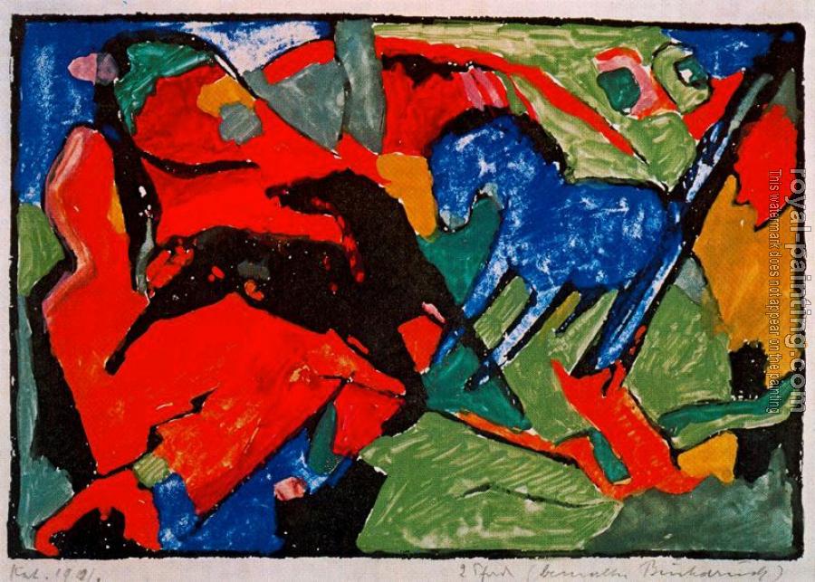 * Hand-painted Franz Marc Oil Painting Reproduction : Two Horses