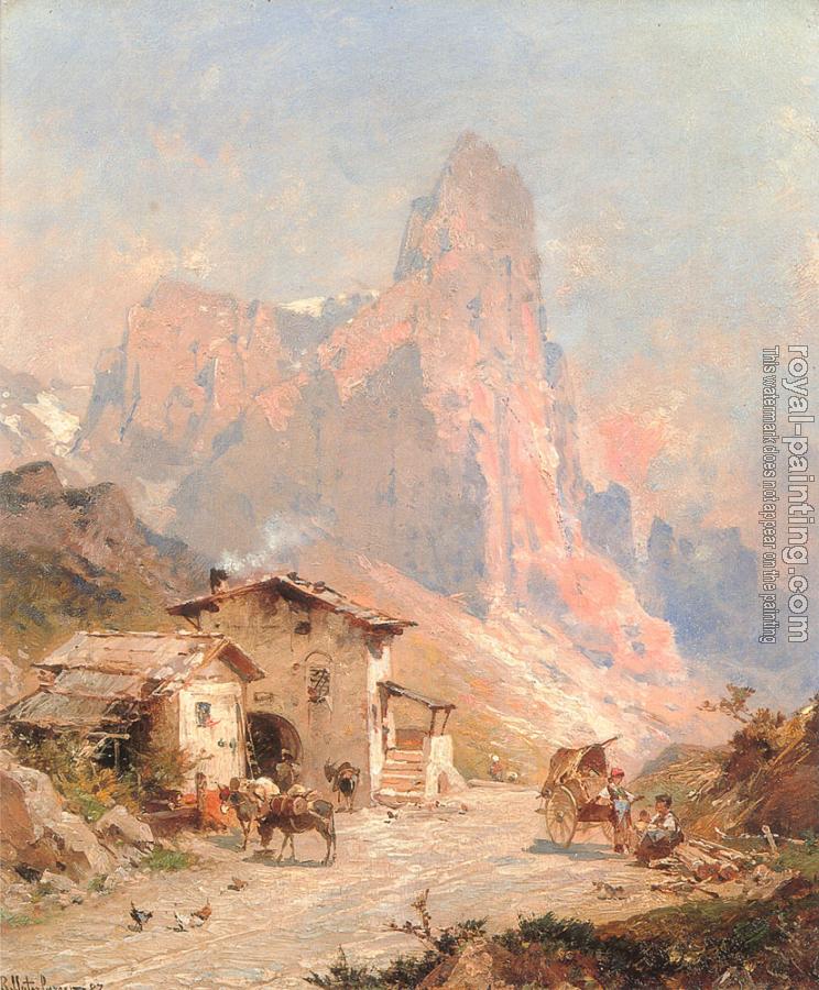 Figures in a Village in the Dolomites by Franz Richard Unterberger
