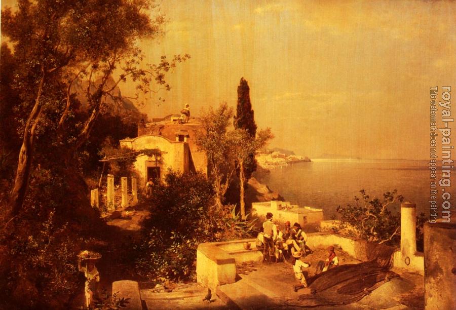 * Hand-painted Franz Richard Unterberger Oil Painting Reproduction : Les Pecheurs Sur La Terrasse