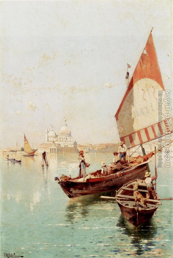 * Hand-painted Franz Richard Unterberger Oil Painting Reproduction : Sailboat In A Venetian Lagoon