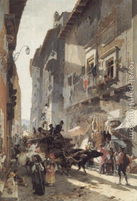 * Hand-painted Franz Theodor Aerni Oil Painting Reproduction : Rue du Marche