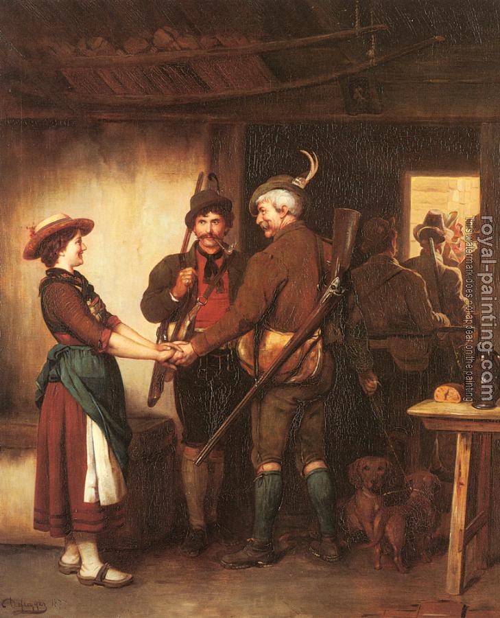 * Hand-painted Franz Von Defregger Oil Painting Reproduction : Abschied Der Jager