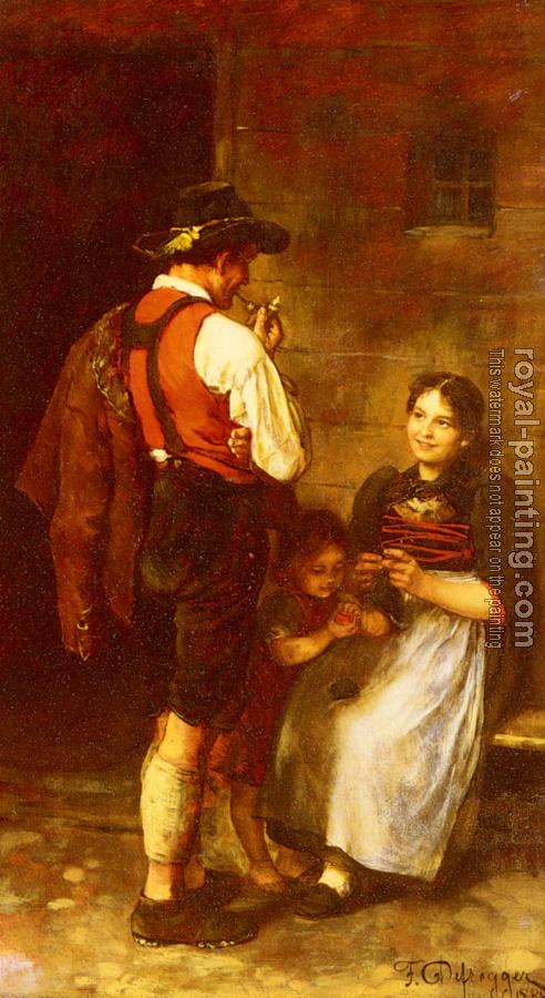 * Hand-painted Franz Von Defregger Oil Painting Reproduction : The Happy Family
