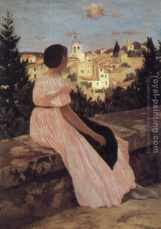 The Pink Dress (View of Castelnau-le-Lez, Herault) by Frederic Bazille