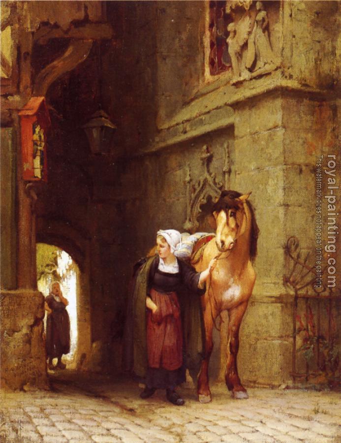 Leading the Horse from Stable by Frederick Arthur Bridgman