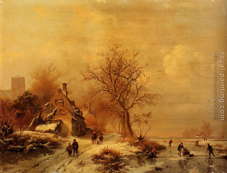 Figures In A Frozen Winter Landscape by Frederik Marianus Kruseman