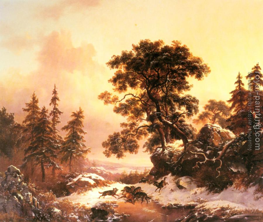 Wolves In A Winter Landscape by Frederik Marianus Kruseman