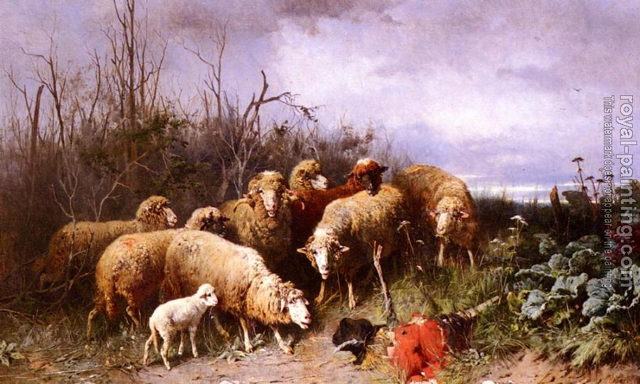 * Hand-painted Friedrich Otto Gebler Oil Painting Reproduction : Schafe Eine Vogelscheuche Betrachtend