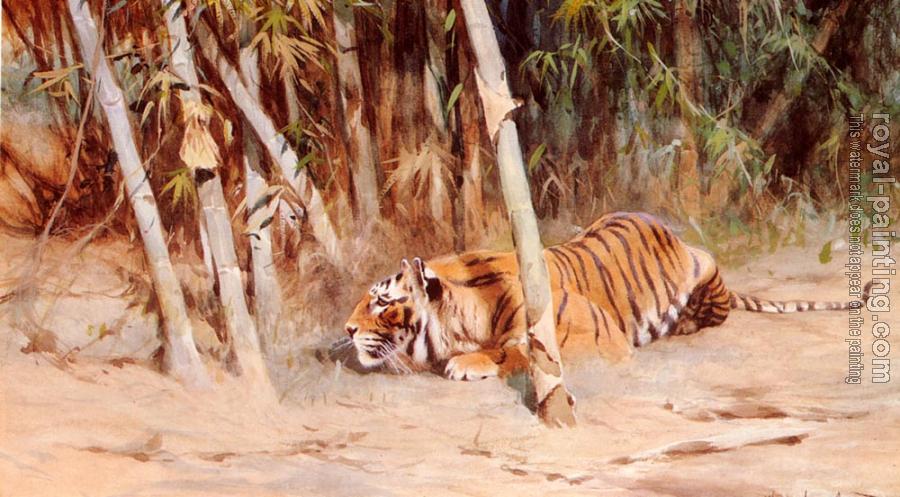 * Hand-painted Friedrich Wilhelm Kuhnert Oil Painting Reproduction : A Preying Lion