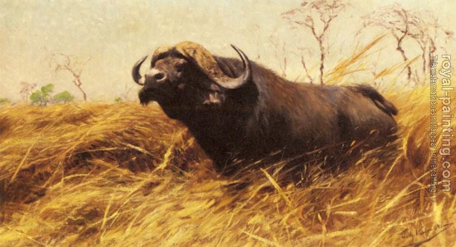 * Hand-painted Friedrich Wilhelm Kuhnert Oil Painting Reproduction : An African Buffalo