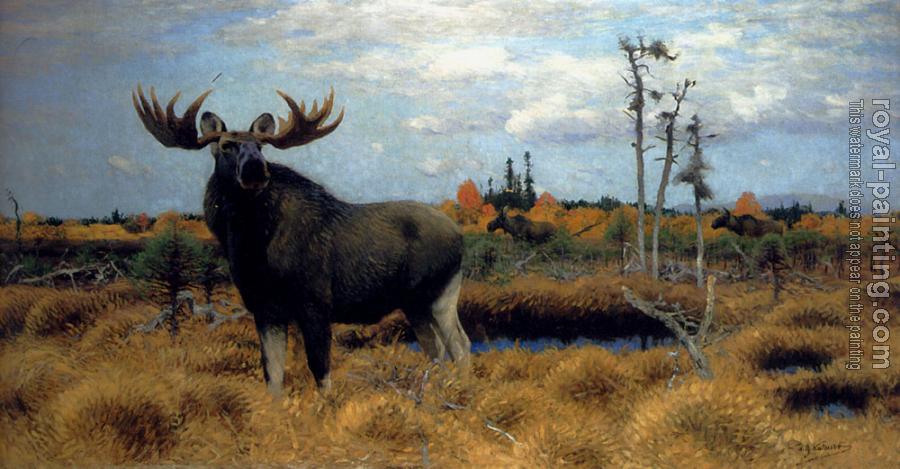 Friedrich Wilhelm Kuhnert, picture ID 31356-Friedrich Wilhelm Kuhnert-Elks_In_A_Marsh_Landscape