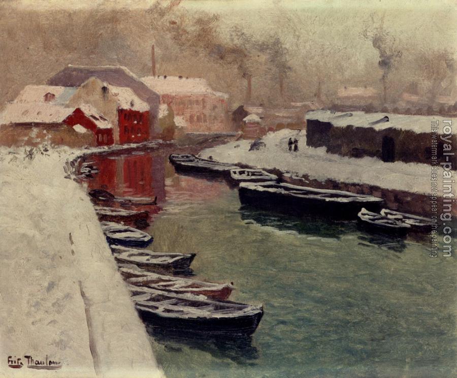 * Hand-painted Frits Thaulow Oil Painting Reproduction : A Snowy Harbo